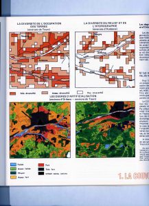 Avec Lucas BERRY, et Pierre FALAISE, les « spatiaux » de l’équipe, nous décidons de réaliser un album, ou atlas, contenant autant de planches, que de thèmes sur le territoire de la Loire Moyenne. Lukas SVAJBERIC a cartographié systématiquement, avec l’aide du bureau de dessin, à l’échelle du 1 / 50 000 -ème, toutes les données recueillies par les membres de l’équipe, afin qu’elles soient consultables par tous au moment des premières réflexions pour l’établissement du futur schéma d’aménagement.