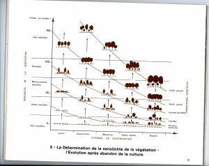 Début 1970, jusqu’en 1973, le CEPE, Centre d’Etudes Phyto-sociologiques et Ecologiques Louis Emberger de Montpellier (CNRS) a été appelé pour d’une part, décrire la couverture végétale, et d’autre part, définir ses aptitudes à résister et à évoluer selon les pressions des futures occupations humaines. J’avais eu connaissance des travaux du CEPE en Tunisie pour la mise en valeur des terres, comme en Sologne. Après rencontre avec Gilbert LONG, l’un des principaux responsables du CEPE, un travail cartographique très important a été réalisé principalement par interprétation de la couverture aérienne et par des reconnaissances de terrain. Le travail a été assuré par Guy CABALLE, doctorant. A partir de ses travaux, G. GODRON et J. POISSONET ont conceptualisé « quatre thèmes complémentaires pour la cartographie de la végétation et du milieu : les séquences de végétation, la diversité du paysage, la vitesse de cicatrisation, et la sensibilité de la végétation ». Bulletin de la Société Languedocienne de géographie. Tome 6, Fascicule 3 – 1977.